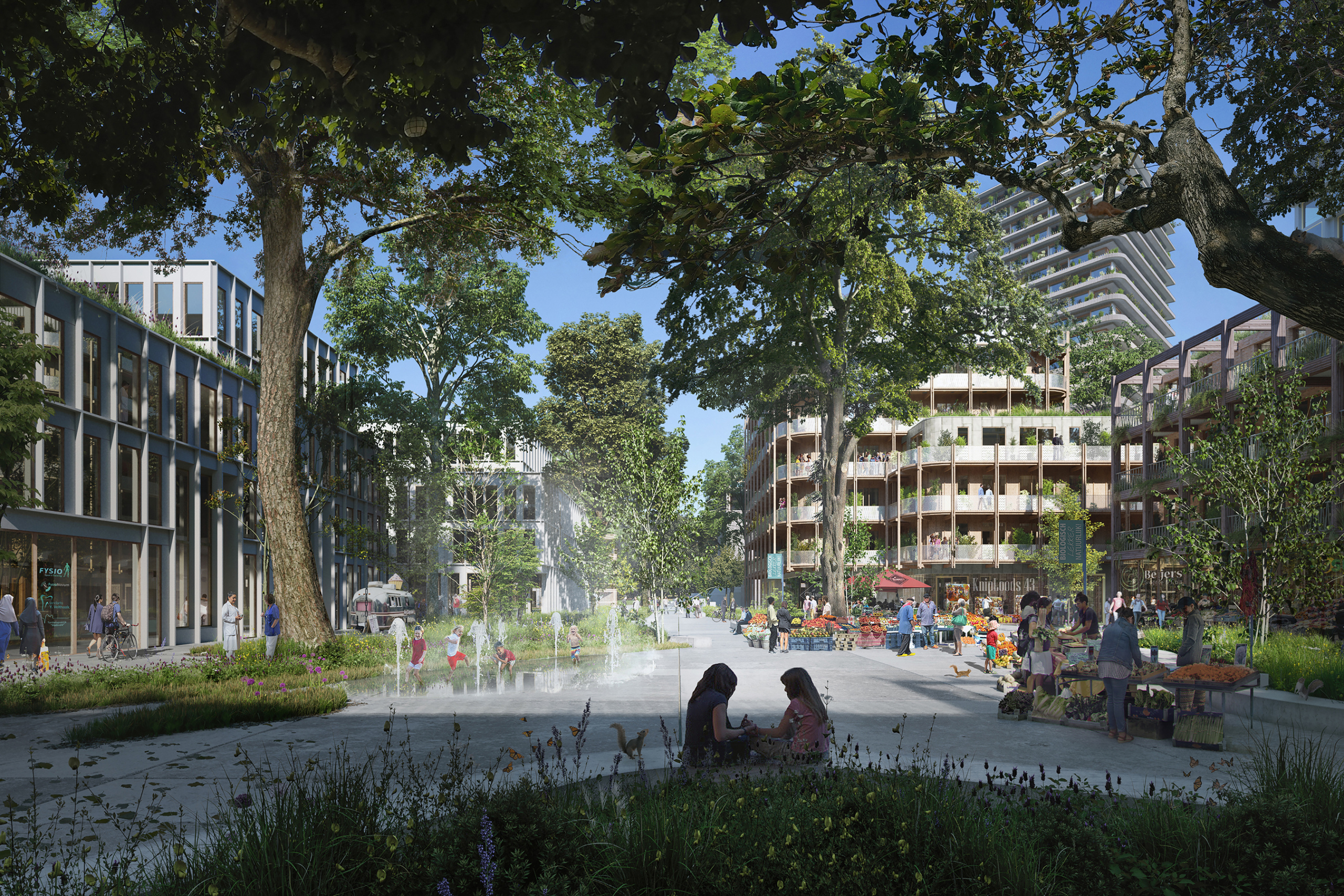 Generous terraces and stairways gracefully drape the landscape, flowing over the parking garage and under the towers. These steps offer seating in the afternoon and evening sun for visitors and passersby. Like a theater by the water, it allows you to enjoy the lively activities on the water and along the quays. The public spaces are designed with a park-like atmosphere, featuring play areas for both young and old. The architectural identity of this neighborhood reflects the diversity of the community.