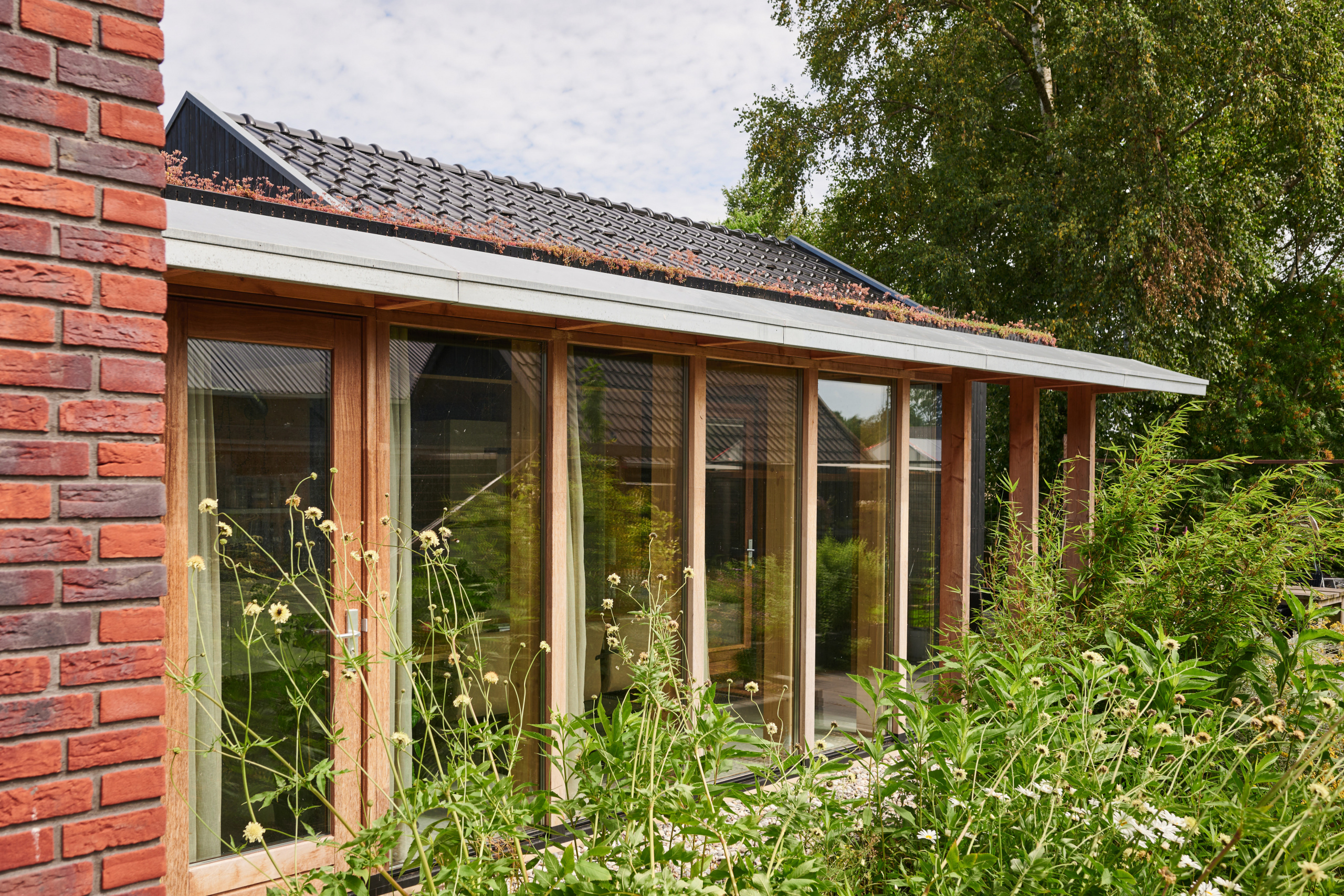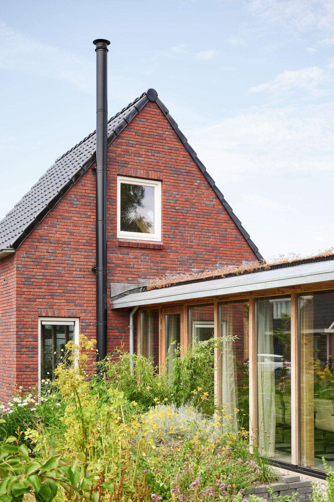 The front “cottage” serves as the face of the street and resembles the commonly found red brick houses in the Groningen countryside.