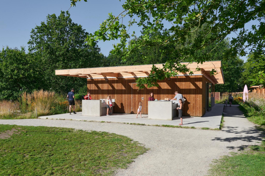 ‘De wijze waarop de afwasplek is gemaakt, stimuleert informele ontmoeting. Precies wat je wilt op een camping. Zoals dit hier is gedaan kom je zelden tegen. Meestal sta je tegen een muur aan te wassen.’