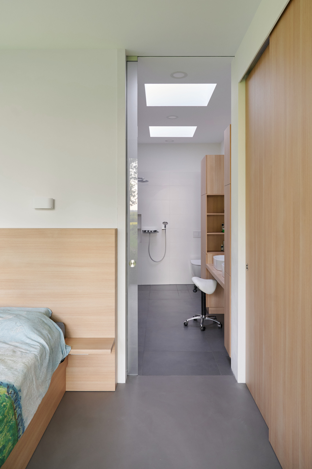 Eenvoudige passiefbouwprincipes zorgen voor een prettig binnenklimaat. De binnenruimte is compact en goed geïsoleerd. De luifel en bomen in de tuin zorgen voor schaduw in de zomer en in de winter verwarmt de zon de betonnen vloer van de aanbouw die de warmte opslaat en langzaam aan de ruimte geeft. De dakramen in de badkamer zorgen voor natuurlijk licht midden in de aanbouw en natuurlijke ventilatie. Het groene dak houdt regenwater vast, verhoogd de opbrengst van de zonnepanelen en geeft een plek en voedsel aan insecten, vogeltjes en eekhoorntjes.