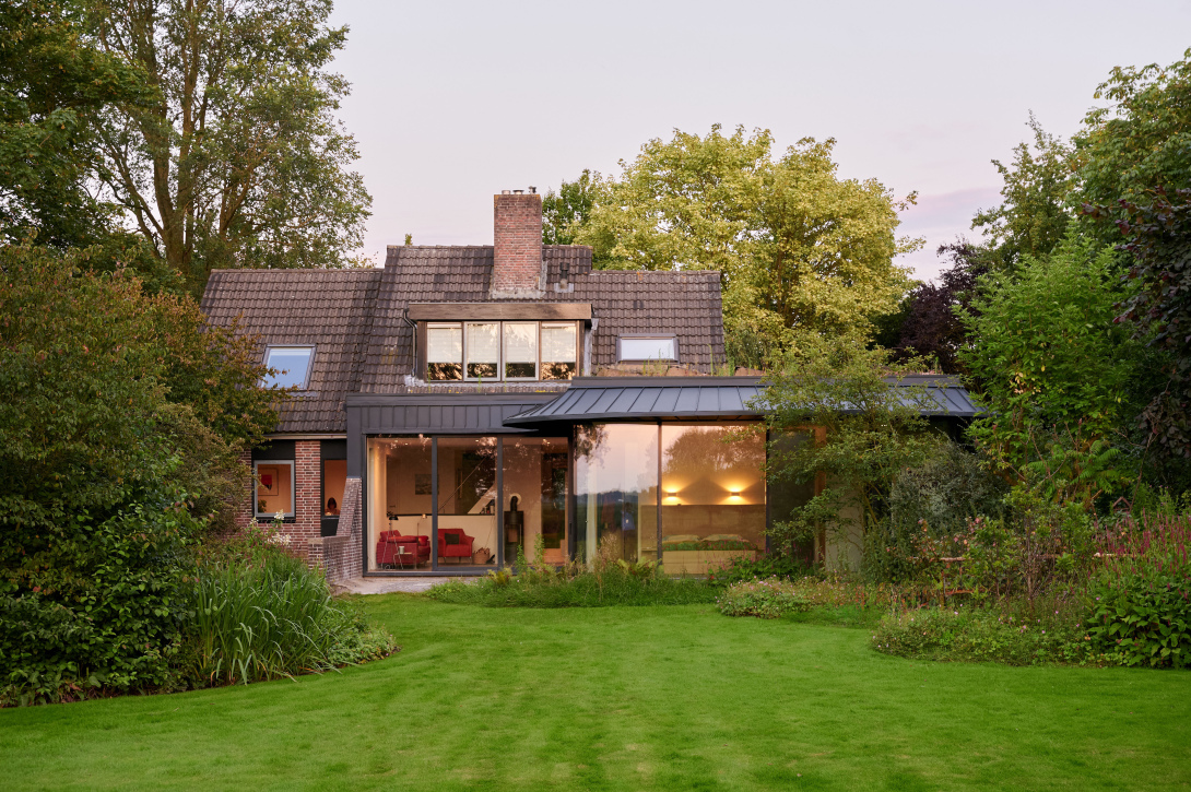 De tuinkamers in de omgeving vormen de inspiratie voor dit ontwerp. Deze sierkamers zijn sierlijke, lichte uitbreidingen van boerderijen met mooi zicht op de tuin. Het Tuinpaviljoen is een eenvoudig volume met ramen van vloer tot plafond en een glooiende dak. De transparante gevel geeft een mooi uitzicht op de tuin, op de hoeken is het glas verlijmd en zonder kozijn gemonteerd om het zicht verder te verbreden.
