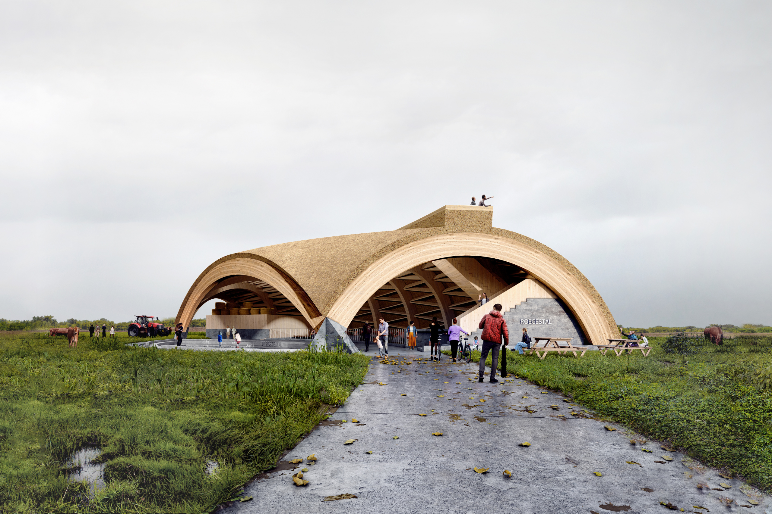 De Kijkstal ligt ingebed in het landschap en voegt zich naar zijn natuurlijke omgeving maar blijft tegelijkertijd niet onopgemerkt in het open landschap. Het gebouw is fysiek gunstig gelegen langs de doorgaande weg tussen Meerstad en Slochteren. In zijn open uitstraling is het een prikkelende uitnodiging om de stal binnen te gaan en ’t Roegwold te gaan ontdekken, verkennen en beleven.